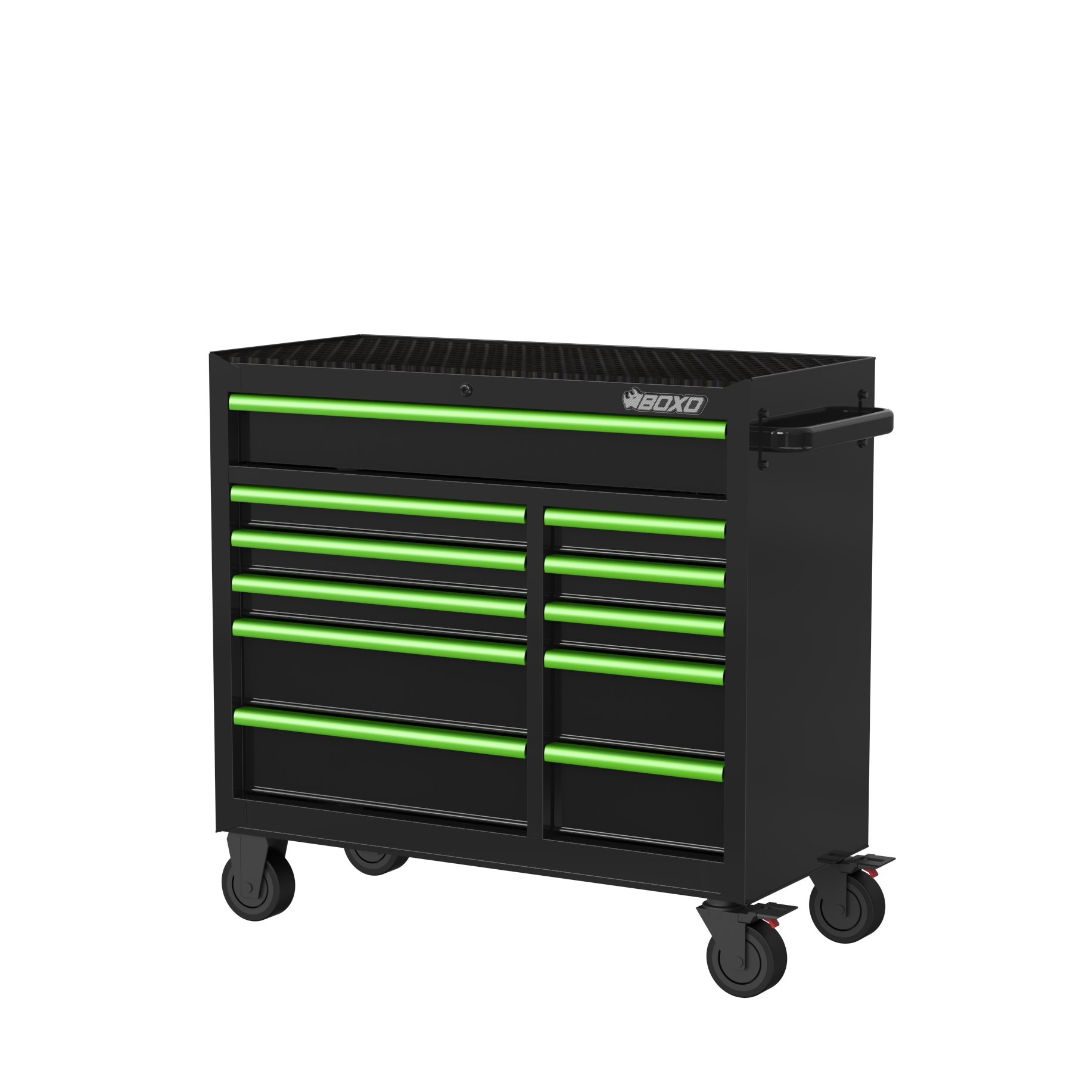 - Lift and Latch Handles keep each drawer securely closed when manoeuvring the toolbox around the workshop.